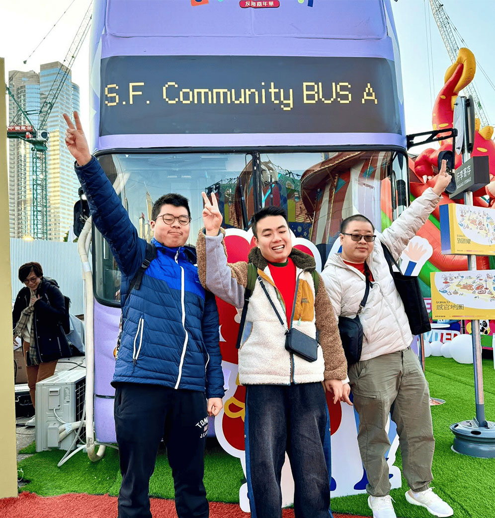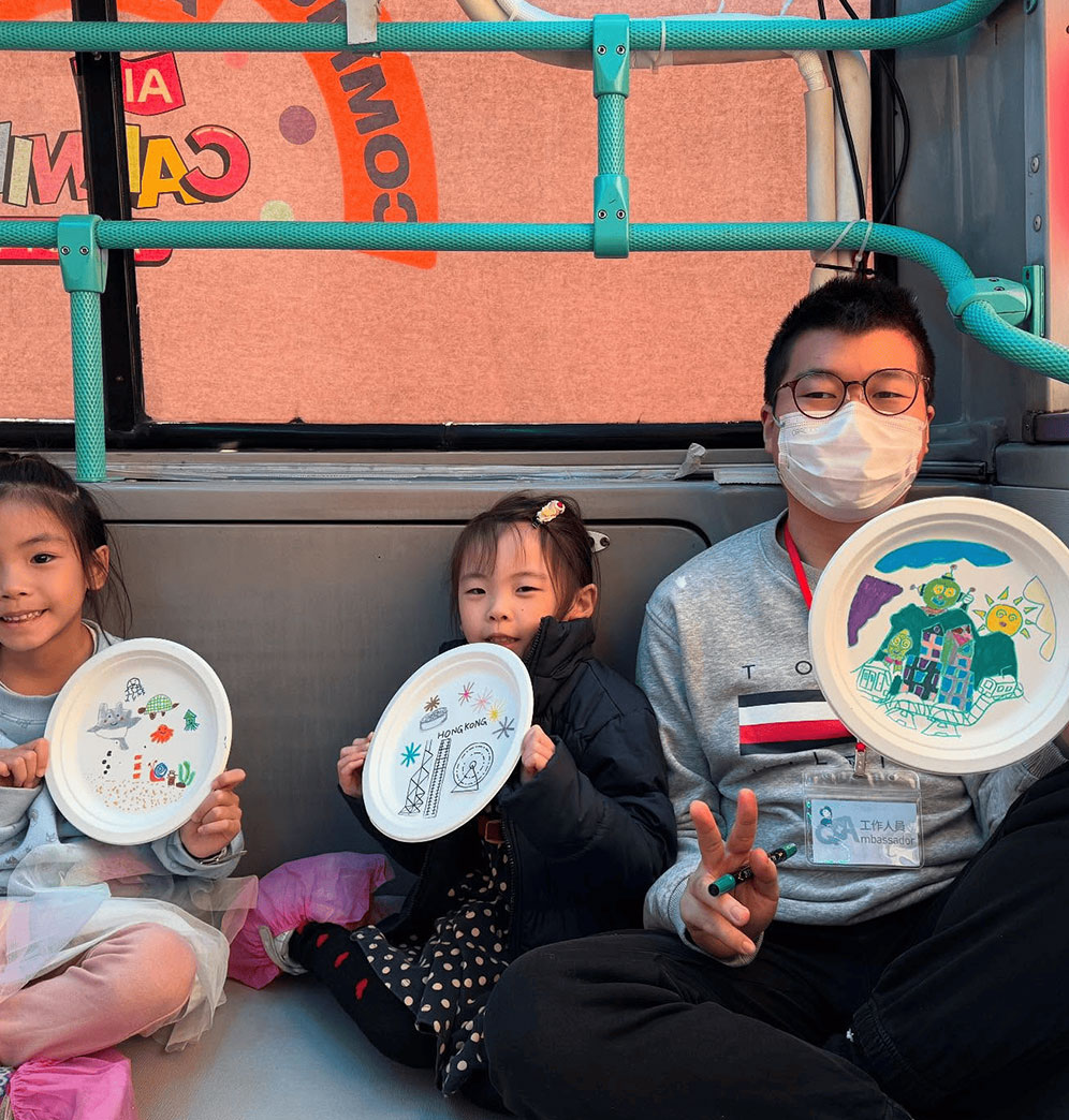 籽橋社的三位展能藝術家在年初七正式出動!今日我哋係AIA 嘉年華上,由順豐快遞贊助的A-bus擔任活動助手,與數十位家庭成員一起參加「香港情」創意工作坊。