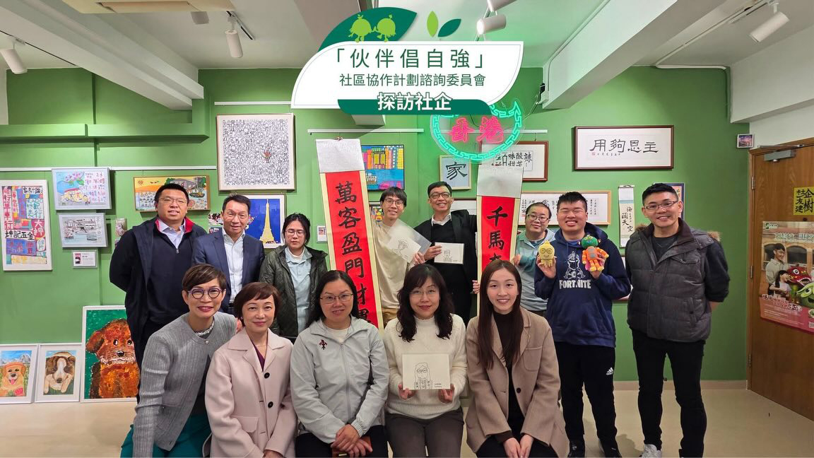 「伙伴倡自強」社區協作計劃諮詢委員會主席唐偉邦先生同一衆委員,實地了解我哋嘅營運情況外,仲同籽橋社負責人及員工交流經驗同心得。