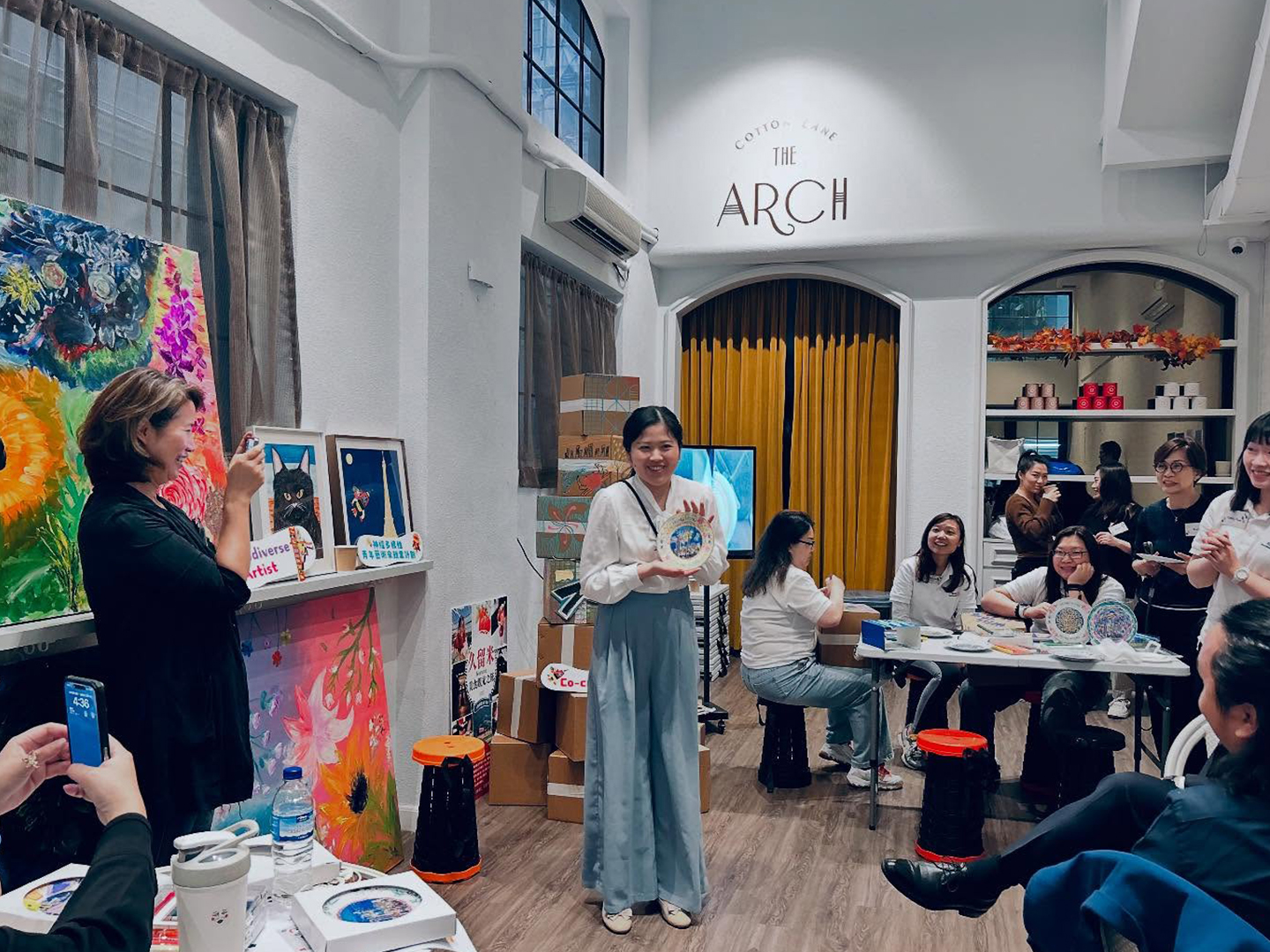 在工作坊裡,由燃亮計劃藝術總監Shammy引發大家一起動手創作,以香港陶瓷碟的二次創作和香港情紙盒裝置的設計,讓每個人都展現了無限創意!