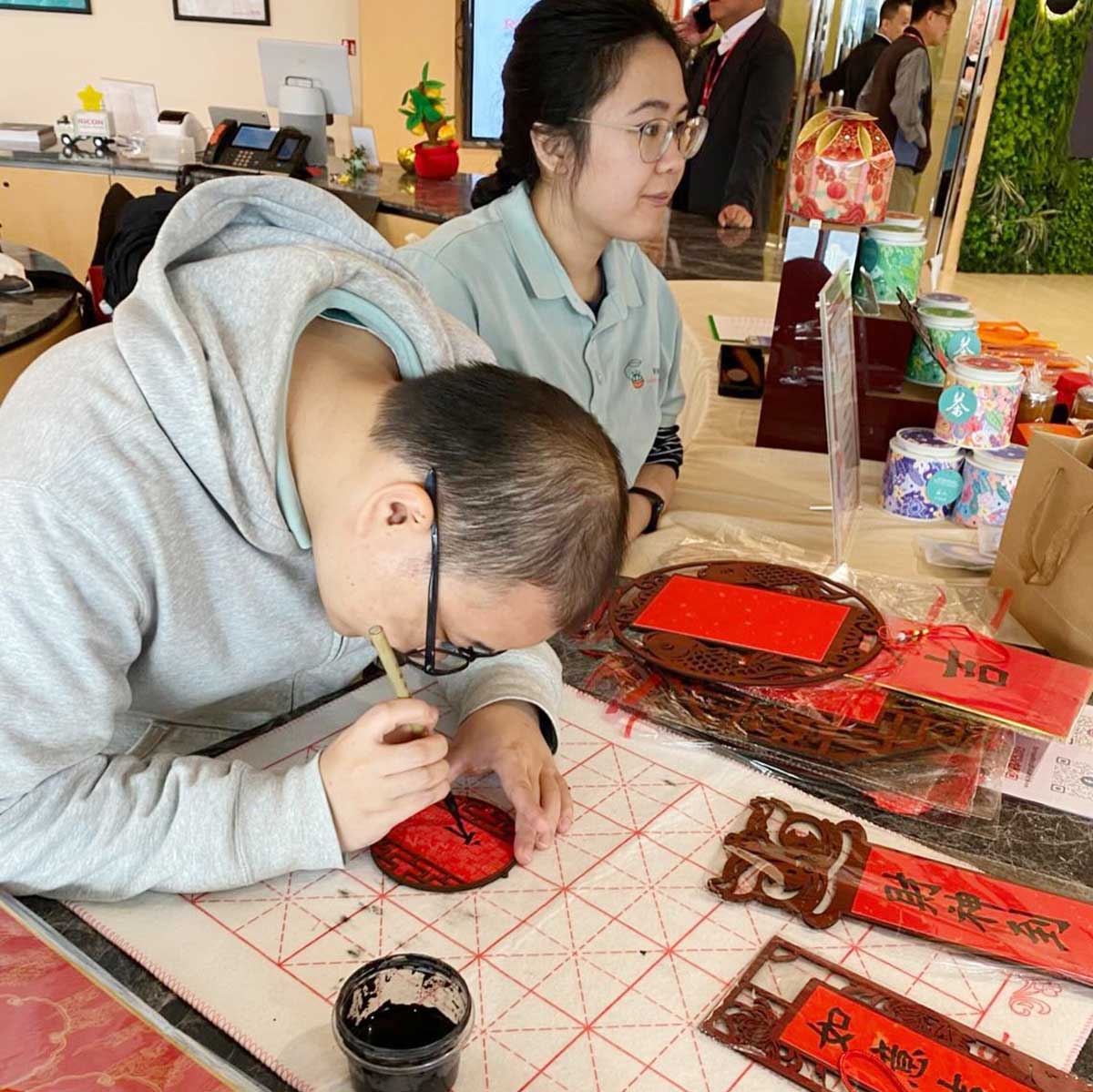 繼上星期三天在香港國際機場同業市集後,今天團隊到達Ricoh 1號九龍辦公室,為Rich 員工提供市集,方便員工在過年前選購精美賀年禮品,書法藝術家黃楚堯向大家展示自己設計的馬年利是封,得到各位的讚賞,籽橋社宗旨為神經多樣性青年搭建橋樑,面向社會大眾,讓社會大眾人士增加對青年的認識。